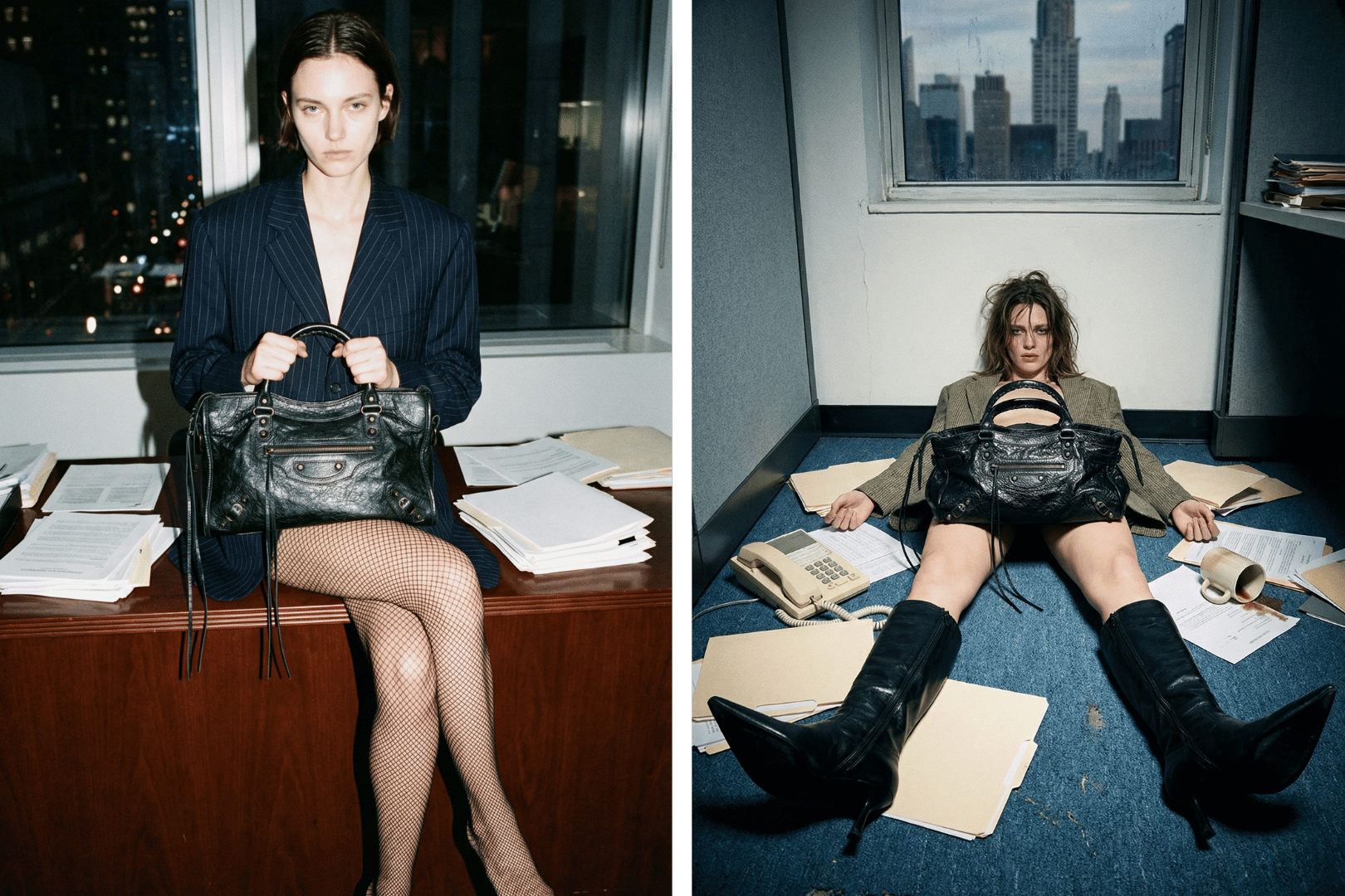Campagna editoriale esplorativa sviluppata attorno alla Balenciaga Classic City Bag, uno dei modelli più iconici del brand. Il progetto immagina una narrazione visiva ambientata in un contesto corporate urbano, dove l’estetica dell’ufficio contemporaneo si trasforma in un set narrativo dal carattere cinematografico e fashion-editorial. Il concept esplora la tensione tra potere, pressione e identità femminile nel mondo del lavoro. Il progetto ha incluso creazione del concept creativo, casting delle modelle, styling e art direction, con l’obiettivo di costruire una serie di immagini coerenti e riconoscibili che valorizzassero il prodotto all’interno di un immaginario contemporaneo e realistico.